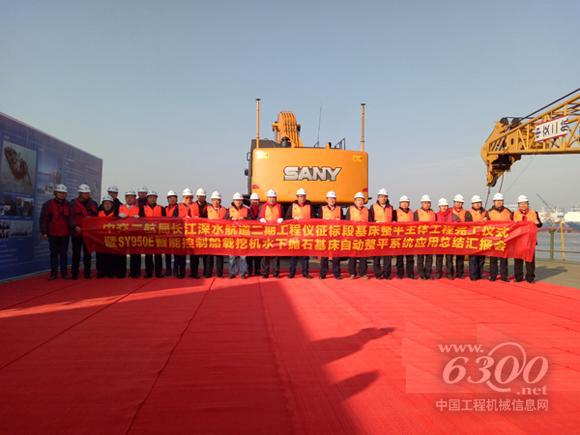 在镇江举行的长江深水航道二期工程仪征标段基床整平主体工程完工仪式暨SY950E智能控制船载挖机水下抛石基床自动整平系统应用总结汇报会上,深水航道指挥部科研处处长曹明雄、中交第二航务工程局有限公司总工程师张鸿、常务副主任尹应军,三一重工副总裁伏卫忠、三一重机大挖公司总经理陈家元、三一重机代理商武汉九州龙董事长方翔、南京天辰礼达电子科技有限公司总经理沈礼伟等企业专家领导出席完工仪式并发表讲话,与会专家充分肯定了“SY950E智能控制船载挖机水下抛石基床自动整平系统”的技术成果,以及随着国内人工成本和施工质量要求的提高,该系统在修斜坡、水下、精挖、管道、机场整平施工中广泛应用前景。