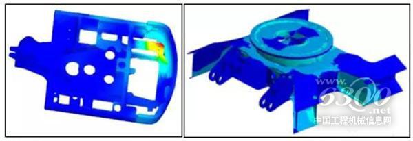 (1)通过CAE技术,模拟动臂斗杆最大受力工况,对其应力集中区域进行结构分析,并进一步优化结构,保证其高可靠性;