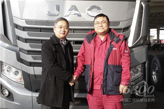 美驰中国区市场销售总监陈赟(左)和江淮重型商用车研究院底盘设计总监王俊伟(右)合影