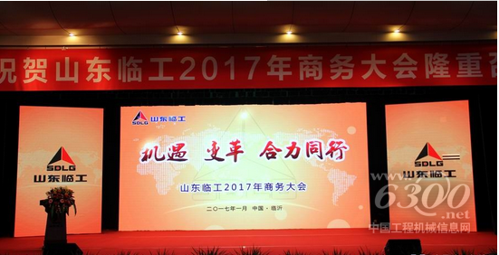2017年1月4日,以“机遇 变革 合力同行”为主题的山东临工2017年商务大会在山东临工临沂总部隆重召开。来自全国一百多家临工经销商和服务商代表近400余人参加。山东临工董事长王志中、总裁于孟生、总经理文德刚等高层领导出席会议并讲话。