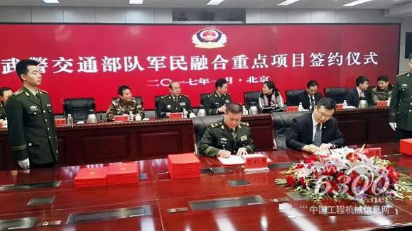 1月13日,武警交通部队与山推工程机械股份有限公司等首批14家军民融合重点项目单位在北京隆重举行签约仪式。武警交通指挥部司令员傅凌、副司令员许钢峰、副政委徐升等部队主要领导出席签约仪式。山推股份公司执行总监安鲁琳参加了签约仪式,并签订战略合作协议。