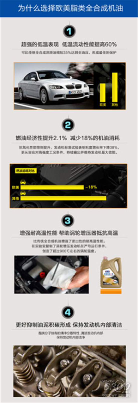 欧美酯类全合成机油系列,比传统全合成机油具备更出色的耐高温性能。在欧美润滑油实验室复制了涡轮增压发动机的严苛运行条件,创造了超过900℃左右的涡轮温度下良好润滑的记录。与相同粘度级别的全合成机油相比,欧美酯类全合成机油燃油经济性提升2.1%,减少18%的机油消耗,减摩能力提高20%。抗氧化性能得到提升,发动标准试验表明粘度增长率下降38%,更从容应对高强度工况条件,持续输出并维持发动机最大效能。