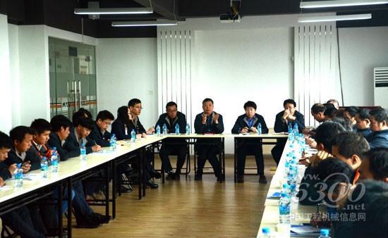 铁拓机械董事长王希仁及公司相关部门高管与售后服务人员进行交流与讨论