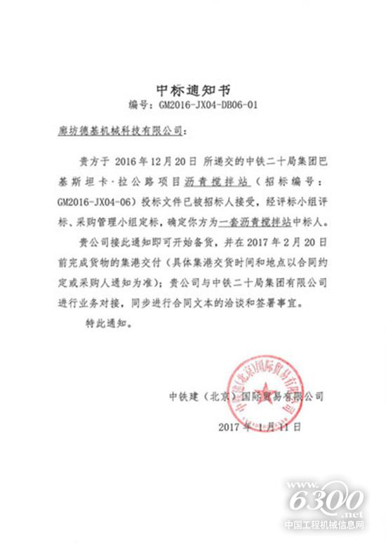 德基机械中标通知书