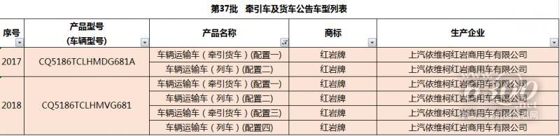2017年1月23日,中国国家交通运输部政府信息公开了“交通运输部第37批道路运输车辆燃油消耗达标车型”。经过严格评测和技术把控,上汽依维柯红岩商用车有限公司(以下简称“上汽红岩”)生产的“红岩杰狮中置轴轿运车”成为重卡整车制造企业首批通过中国燃油公告的车辆运输车。