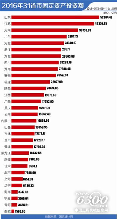 经济大省实际额度也很高。比如2016年山东、江苏、河南、广东、河北投资额均在3万亿元以上,其中,山东达到了52364.49亿元,江苏为49370.85亿元。
