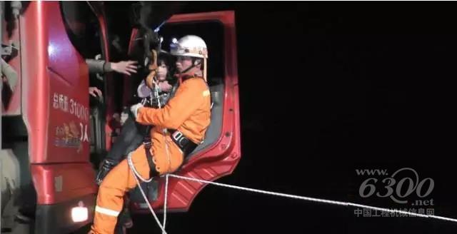 2017年2月7日傍晚,重庆市涪陵区白涛镇,一辆大货车冲出路面,冲破路边护栏,车头悬挂于半空中,车内四人被困,情况十分危急,最终重庆市消防部门驾驶三一帕尔菲格折臂式随车起重机PK10000型号前往事故现场,消防员“悬空”救人,最终车上人员成功获救,无人受伤。