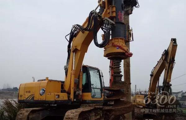 在堤身加固新老堤结合工程中,遇到的最大难点是堤身加培施工填筑作业面狭窄,土层地面较软且有一定坡度,部分工段在高压线下作业。而泰信小旋挖面对本次工程却能得心应手,KR50一天8小时14根桩,KR80一天8小时16根,截止目前工程一切照计划正常进行。