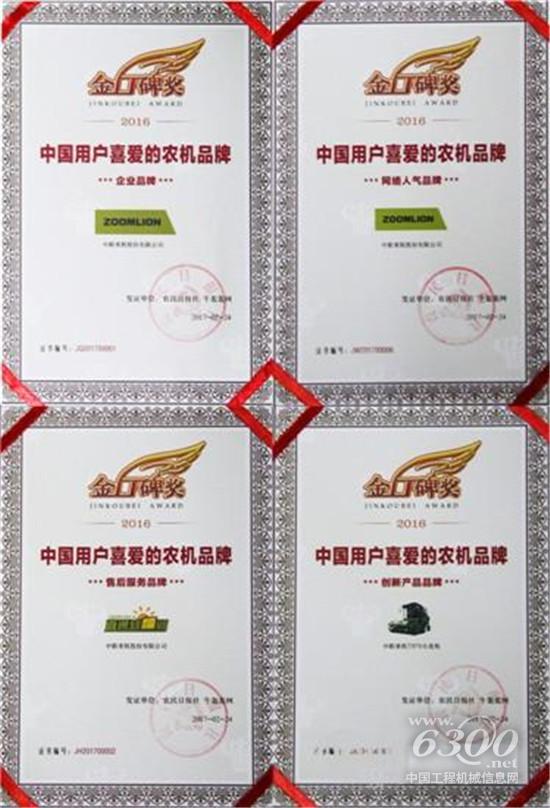 中联重科荣获中国用户喜爱的农机品牌四项大奖