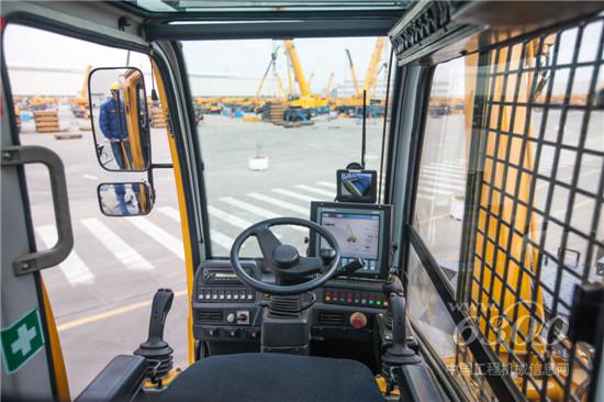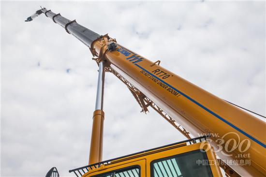 展会现场,一款早已在海外扬名的RT70U越野轮胎起重机更是备受青睐。这款越野轮胎起重机的车桥是德国kessler专为越野轮胎起重机开发的。前后桥均为转向驱动桥,承载能力大,可靠性高,维护方便。全液压电比例多模式转向系统,具有前桥独立转向、小转弯转向、蟹行转向和后桥独立转向功能,最小转弯半径仅为6.1m。五节主臂采用双缸绳排伸缩系统,先导阀采用电比例控制阀,将整机微动性发挥到极致。