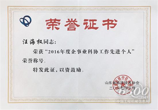 会议隆重表彰了2016年度学会工作先进单位、优秀专业委员会、企事业科协先进单位、学会工作先进个人、企事业科协工作先进个人。中国重型汽车集团有限公司科协获2016年度山东省企事业科协先进单位,中国重汽科协副主席汪海权荣获2016年度山东省企事业科协工作先进个人称号。