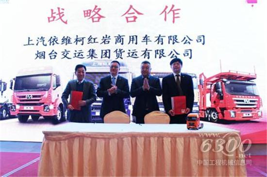 在上汽红岩总经理楼建平、烟台交运集团货运有限公司董事长窦洪钢以及全体参会者的见证下,上汽红岩副总经理施轶才与烟台交运集团货运公司总经理施建福共同签订了战略合作协议,双方在烟台地区将紧密协作,共同推动烟台地区的物流运输发展。