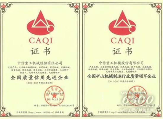 中信重工连续六年蝉联“全国质量信用先进企业”和“全国矿山机械行业质量领军企业”荣誉称号