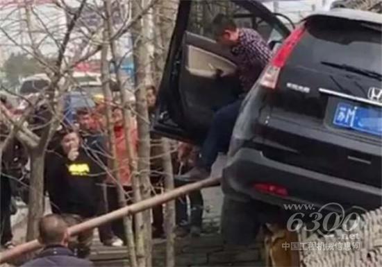 ▲交警赶到事故现场,借了一条梯子让车主爬下来