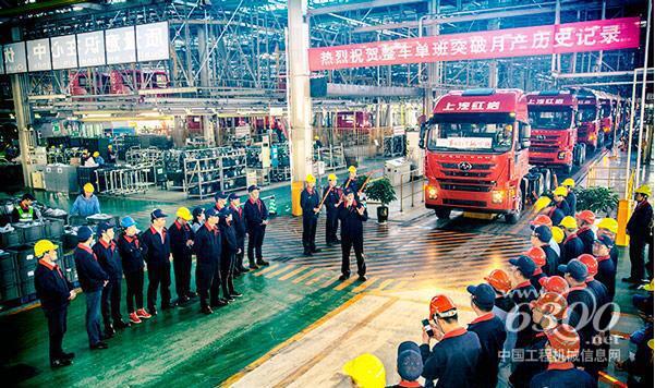 3月31日下午5点,上汽红岩整车装配车间下线区热烈非凡,在经过公司全员一个月的鏖战后,迎来了一个新的历史性时刻,3月整车生产4517辆,创下整车单班月产新纪录,标志着上汽红岩产销大会战首战告捷。