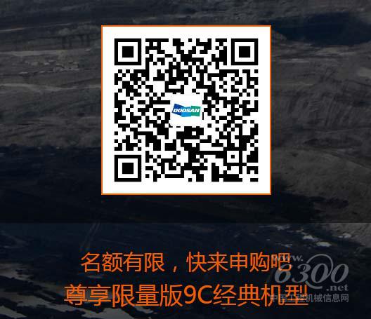 2、或,微信扫码下方二维码关注“斗山工程机械”官方微信,点击80周年惠,选择80台•限量申购,即可报名参加。