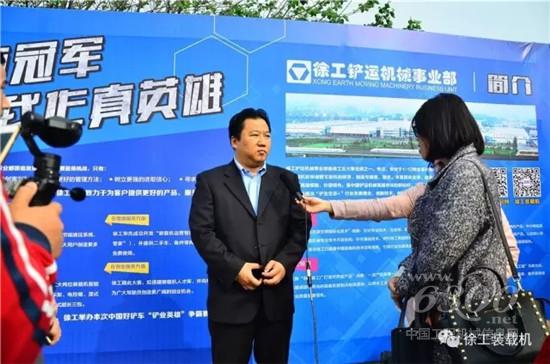 在争霸赛现场,梁总向媒体介绍了徐工铲运近年来在服务、备件上为提升客户价值所推出的系列新举措,表示徐工在为客户提供“技术领先 用不毁”的徐工装载机的同时,潜心服务备件提升,发布装载机行业第一个服务品牌“金牌服务 全力全程”,更大限度的追求客户感动