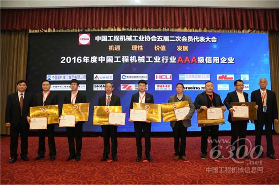 李殿和代表山推股份公司接授2016年工程机械企业AAA级信用等级评价证书和牌匾
