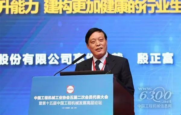 中联重科副总裁殷正富先生代表中联重科出席会议并向与会的领导、嘉宾作了题为“保持定力 提升能力 建构更加健康的行业生态”的主旨发言。