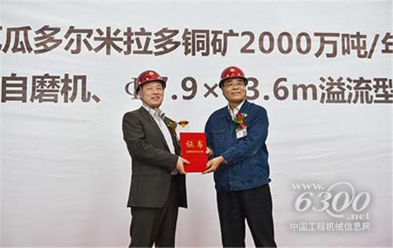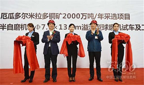 俞章法董事长在致辞中说,厄瓜多尔米拉多铜矿项目Φ10.97×5.4m半自磨机、Φ7.9×13.6m溢流型球磨机的试车交付具有两大重要意义:第一,再次代表了中信重工在大型矿用装备国产化的能力和大型矿山装备国际化的水平;第二,代表了中信重工和铜陵有色两个大型国有企业践行国家“一带一路”战略的重大实践。