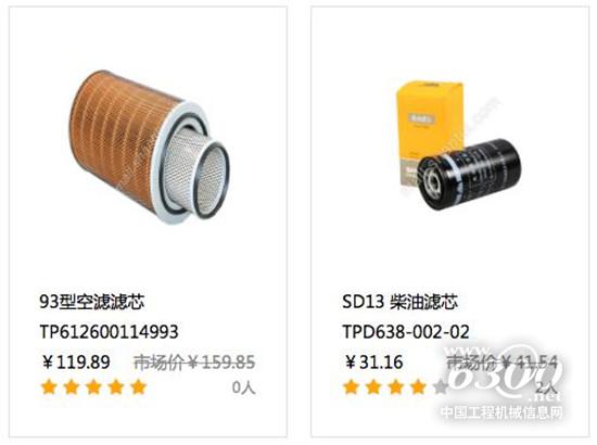 在山推E家网站,进入“买配件”页面,点击或输入“推土机”、“挖掘机”、“滤芯”等关键词,即可以看到相关优惠产品。