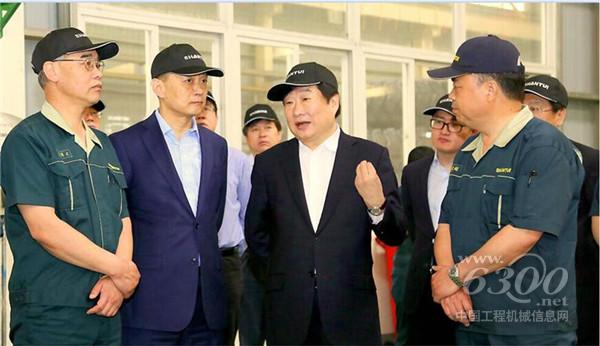 5月5日上午,山东重工集团董事长谭旭光,总经理江奎一行到山推调研,深入生产现场参观考察了道路机械生产线、推土机总装线和新产品试制车间,看望慰问了高温下奋战在生产一线工作的干部员工;认真听取了公司领导班子就各自分管业务的工作汇报,并现场点评和指导。集团副总经理谢树敏、申传东等集团领导随同,公司董事长张秀文,总经理李殿和,党委副书记孙学科,副总经理唐国庆及公司各部门负责人参加。