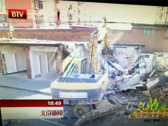 北京卫视《北京新闻联播》栏目中有“包租工”字样的施工挖掘机镜头