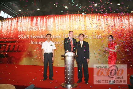 2007年9月3日,瑞典钢铁集团在昆山新建的钢板仓储及备件加工中心举行了隆重而热烈的瑞钢钢板(中国)有限公司落成典礼及设备启动仪式。昆山市副市长汪国桢先生,瑞典驻上海总领事馆领事Lars Andreasson先生和瑞典钢铁集团总裁兼首席执行官Olof Faxander先生出席了落成典礼并剪彩。作为长期关注瑞典钢铁集团在中国的发展并为提供服务的主流网络媒体,中国工程机械信息网代表应邀参加本次典礼仪式。