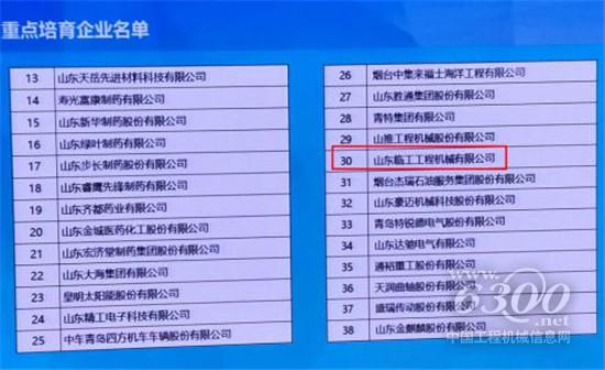 会上发布了山东百年品牌企业培育工程实施方案及重点培育企业名单,成立了“百年品牌企业联盟”。全省共有182家企业入选山东百年品牌企业重点培育对象。其中:弘扬老品牌梯队包含3家企业,做强大品牌梯队包含60家企业,培植特色品牌梯队包含119家企业。山东临工工程机械有限公司入选山东百年品牌重点培育企业培植特色品牌名单。