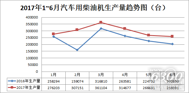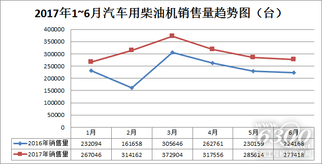 2017年上半年朝柴主要产品装机7556台,比去年同期的17596台累计降低57.06%。四缸机中较大增幅的是NGD3.0装机1194台,比去年同期累计增长197.01%,同处增长态势的是QD32装机量209台,累计增幅为25.15%。其他机型均处于下降态势,其中4100装机1267台,同期累计下降40.09%,4102装机2754台,同期累计下降79.16%,4105装机,0台,同期累计降幅为100.00%;QD80装机量42台,累计降幅达92.82%。六缸机中的6102机型上半年累计装机量2090台,比去年同期的682台大幅增长206.45%。