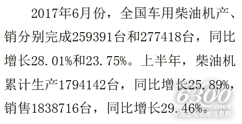 2017年上半年,道依茨一汽(大连)柴油机有限公司主要产品装机31233台,比去年同期的41323台累计下降24.42%。其中DDE累计装机8957台,比去年同期的10687台累计降低16.19%。上半年,大柴四缸机合计装机8941台,比去年同期的10675台累计降低16.24%;六缸机累计装机16台,比去年同期的12台累计增长33.33%。道依茨累计装机24167台,比去年同期的30636台累计下降21.12%。