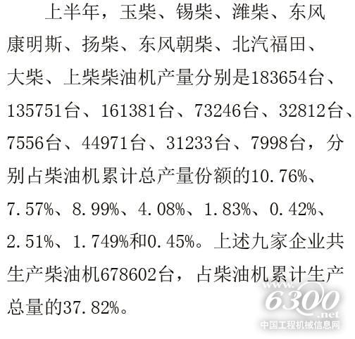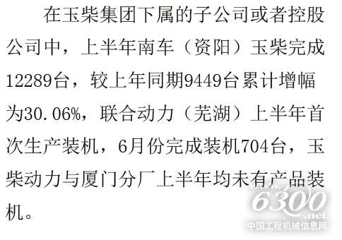 上半年,潍柴主要产品共装机161381台,与去年同期的69002台相比累计大幅增长133.88%。在所有机型中与去年同期比较,出现较大增幅的为:WP12出现最大增幅增长227.34%,WD615G出现较大增长增幅为206.96%,WP10增幅为57.81%,WD615增幅为138.57%。呈下降状态的是,P7系列降幅为81.72%,P5系列降幅为81.62%,WD12,615、618船、电均为0装机量。