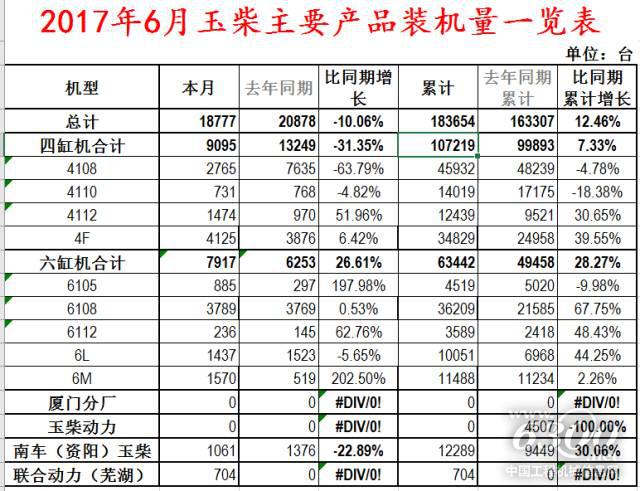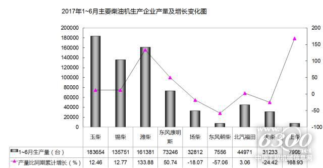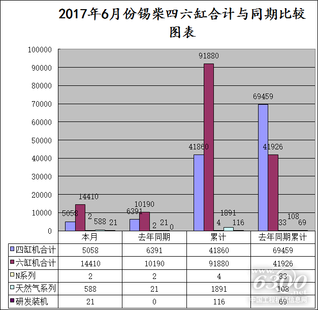 2017年上半年,锡柴主要产品共装机135751台,与去年同期的120374台相比,增长12.77%,在其主要的产品系列中,四缸机累计完成41860台,六缸机累计完成91880台,N系列累计完成4台,天然气系列累计完成1891台,研发装机116台,同比累计增幅分别为-39.73%、119.15%、-87.88%、1650.93%和68.12%。
