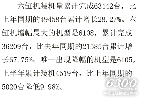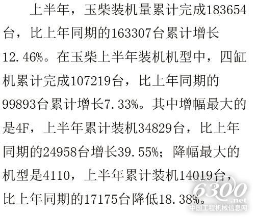 从各机型产量看,四缸机中4DW81、4DW91、4DW92/93三机型上半年累计装机量排名前三,分别是15761台、15761台和4529台,同比分别增长-45.96%、-45.96%和35.76%;六缸机中排名前三的机型分别是6DL2、6DM2/E3F、6DME3,装机量分别是19265台、52784台和8534台,同比分别增长142.05%、178.76%和121814.29%,均出现大幅增长。