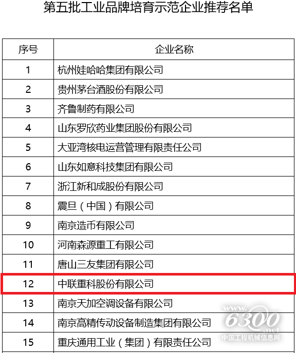 近日,工信部公布了第五批工业品牌培育示范企业名单,中联重科股份有限公司凭借多年的国际化品牌培育经验及品牌发展成就,成为入选的44家示范企业这一。