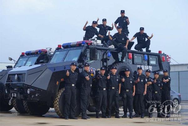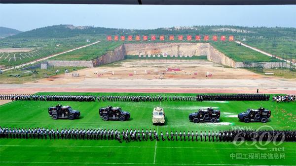 在全省综合实战演练暨誓师动员大会,青岛重工的6辆“獒威”警用装甲车和1辆“虎威”装甲车在公安特警的操控下真正“发威”,显示了此车防暴反恐的威武霸气。