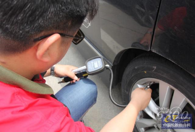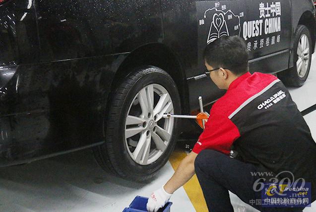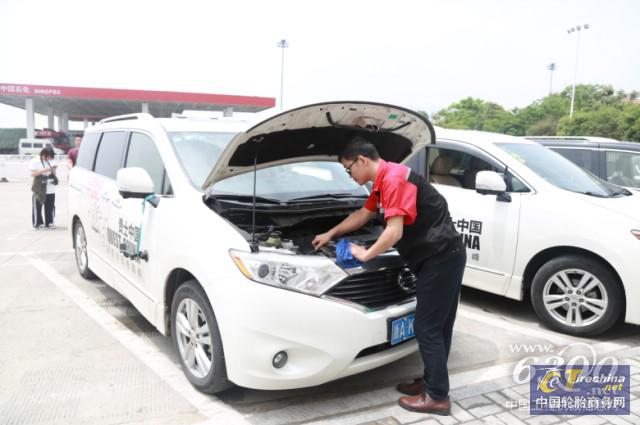 工作人员为车队详细检查并更换轮胎