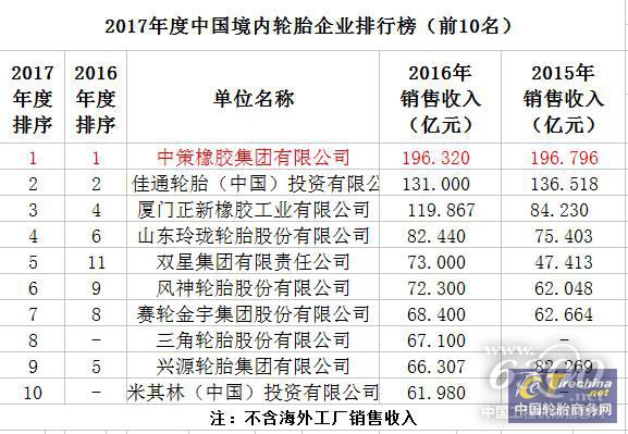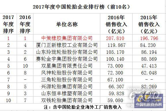8月24日,在中国橡胶工业协会《中国橡胶》杂志社于安徽铜陵举办的“橡胶工业前沿技术论坛暨2017年度中国轮胎企业排名发布会”上,中橡协《中国橡胶》杂志社和轮胎分会正式发布了“2017年度中国轮胎企业排行榜”等榜单。