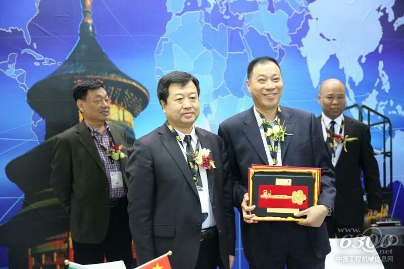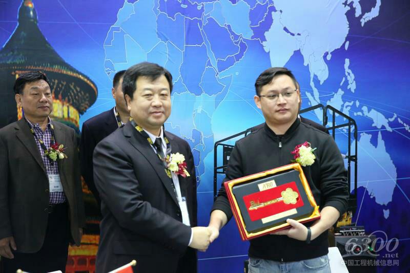 安锐公司董事长李忠波先生给宇隆腾公司赠送AIRO高空作业平台钥匙模型