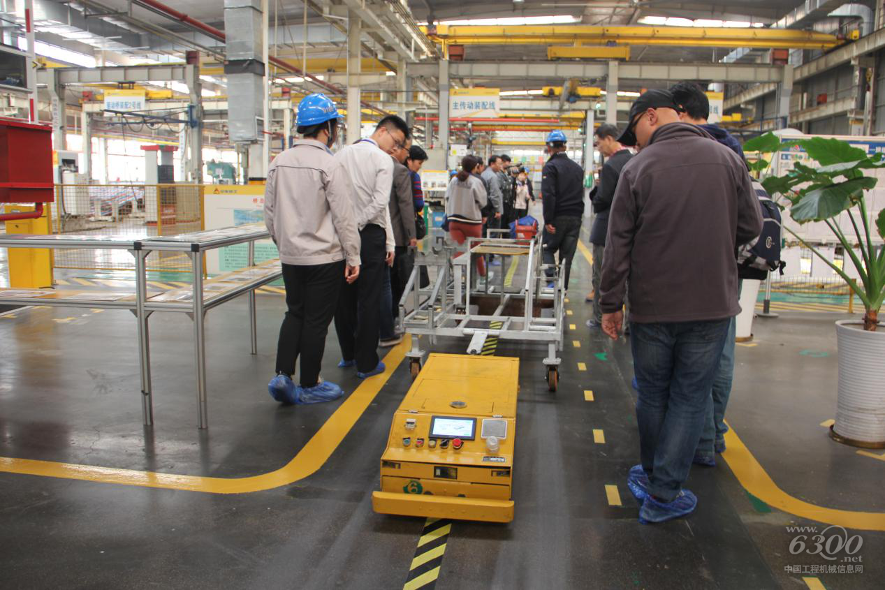 路面机械车间主要承担挖掘装载机、平地机、压路机的关键零部件焊接与整机装配工作,在这里曾装配下线877挖掘装载机、9190平地机等多款临工明星产品。一进车间,地面上的AGV自动配送轨道便跃然于眼前,通过AGV自动导引配送,内部工序便可按需自动化配送,不仅可以减少叉车在车间的使用,还可大幅提升效率。与此同时,针对路面机械产品小批量、多品种的特点,临工在此车间还配备了安灯控制系统,通过安灯系统便可将生产过程可视化,使装配线的设备、质量、交付、技术一目了然。安灯系统还起到警报作用,按下后,应急人员便会在3分钟内赶赴现场解决问题。