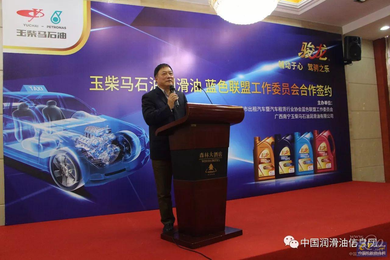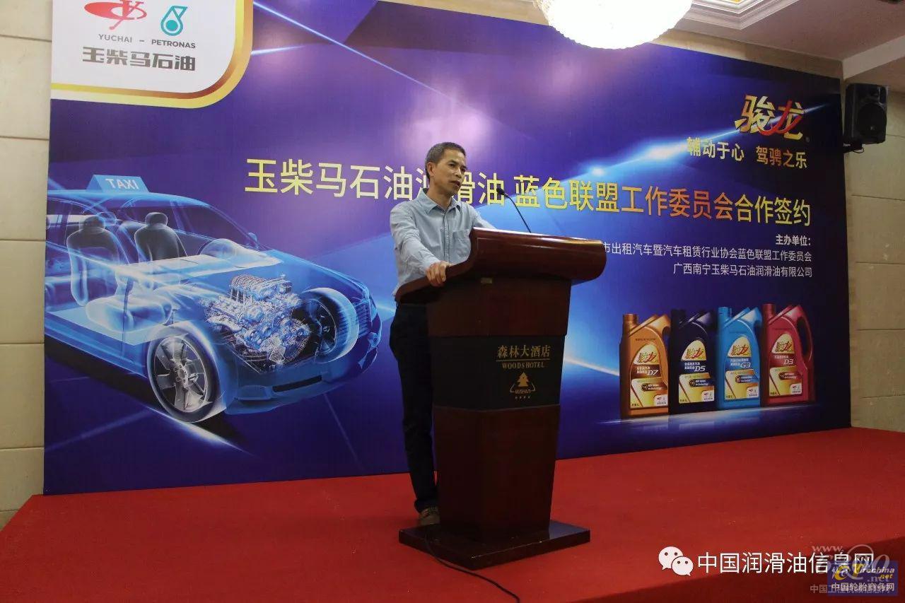玉柴马石油董事长谢裕强、玉柴马石油销售副总经理陈长道、蓝色联盟工作委员会秘书长张福林、蓝色联盟工作委员会副秘书长陆建一、蓝色联盟秘书处办公室主任欧式修,及玉柴马石油骏龙项目组经理王宁杰等管理人员、蓝色联盟出租汽车公司领导等出席了签约仪式,玉柴马石油销售副总助理苏芃先生主持仪式。