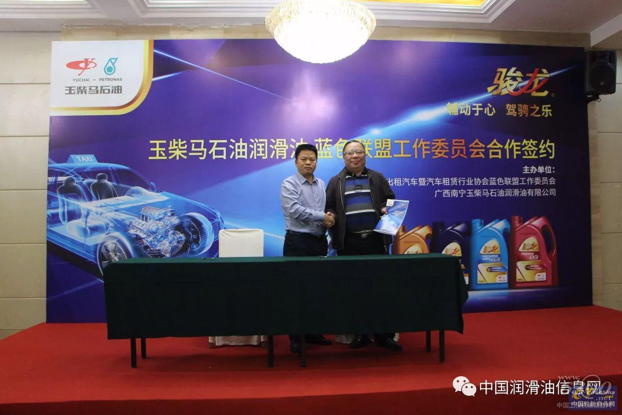 2017年11月6日,广西南宁玉柴马石油润滑油有限公司与上海市出租汽车暨汽车租赁行业协会蓝色联盟在常熟森林大酒店举行长期战略合作伙伴协议签约仪式。蓝色联盟作为上海市出租汽车在行业现代企业改革中脱颖而出的、以企业服务品牌为纽带的联合型经济体,此次与玉柴马石油建立长期合作关系,旨在树立服务品牌,加强服务质量管理。玉柴马石油也将一如既往地为合作伙伴提供优质的润滑油产品,竭力提供更好的支持与服务。