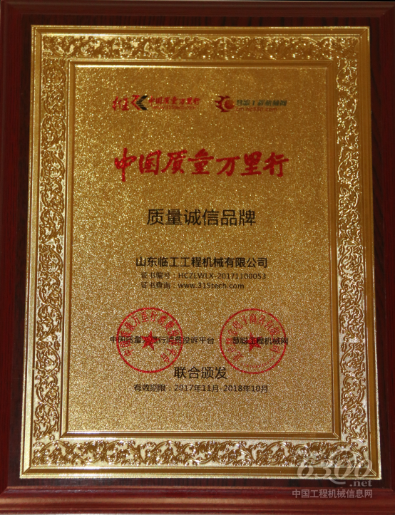 在本届大会上,慧聪工程机械网特别联合了中国质量万里行消费投诉平台成立中国质量诚信联盟,引导企业以身作责,勇作行业质量诚信典范,助推产业发展。山东临工积极加入,并获得由慧聪工程机械网和中国质量万里行共同颁发的“质量诚信品牌”奖。