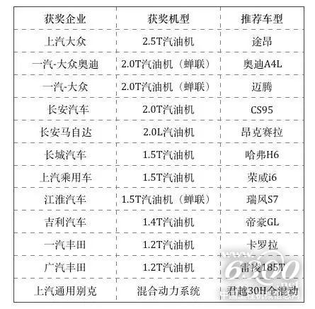 昆仑润滑油杯“中国心”2017年度十佳发动机获奖名单
