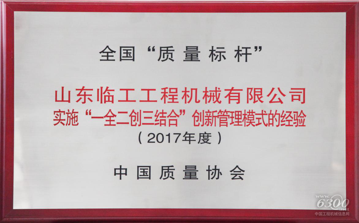 2017年,由工业和信息化部科技司主办、中国质量协会和北京市经济和信息化委员会联合承办的2017 年第三期质量标杆经验学习交流活动在北京举办。山东临工《实施“一全二创三结合”管理创新模式的实践》荣列2017 年工业企业质量标杆典型经验榜单。