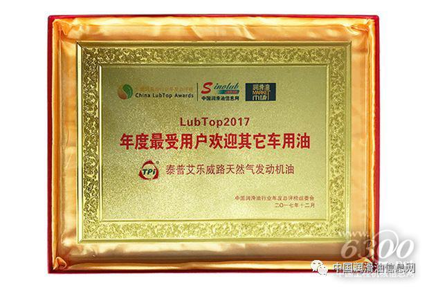 泰普艾旗下乐威路天然气发动机油,以绿色可靠打造品牌的产品特质,以专业天然气润滑凸显品牌的引力优势。12月28日,“润滑油行业奥斯卡”—— “LubTop2017中国润滑油行业年度总评榜”在上海隆重张榜,乐威路天然气发动机油一举斩获“年度最受用户欢迎其他车用油”殊荣,这是泰普艾在天然气发动机油领域综合竞争力的体现,更是来自行业权威的点赞和市场用户的口碑。