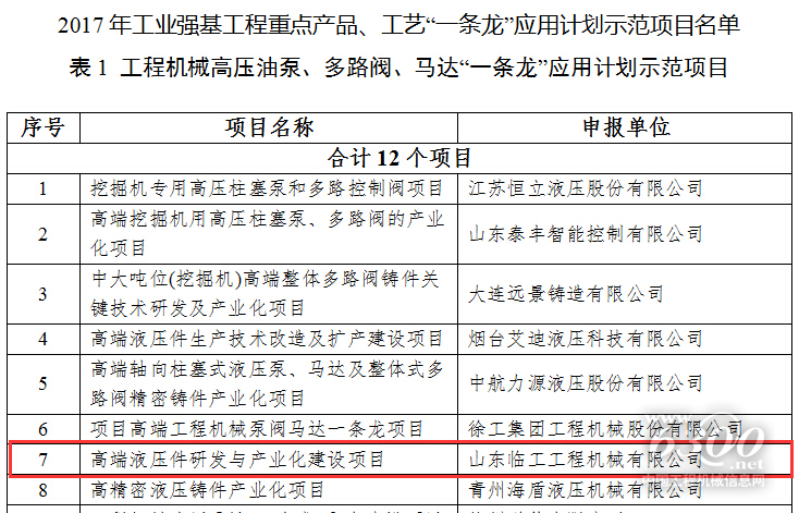 日前,国家工信部、国家开发银行联合发布《关于组织开展2017年工业强基工程重点产品、工艺“一条龙”应用计划工作的通知》。山东临工以“高端液压件研发与产业化”项目参选,经过多轮专家评议、企业现场答辩和网上公示等环节,山东临工成功入选2017年工业强基工程重点产品、工艺“一条龙”应用计划示范企业名单和示范项目名单。