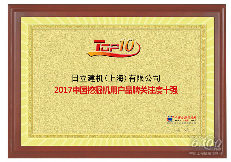 日立建机上榜“2017中国挖掘机用户品牌关注度十强”