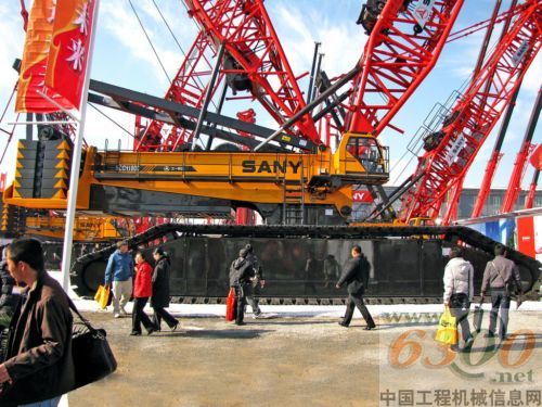 上海三一科技有限公司是三一集团旗下,专门负责履带式起重机业务的子公司,2008年初曾推出被誉为“亚洲第一吊”的SCC9000型900吨级履带式起重机。在此次展会上,他们推出了最新研制的SCC11800型1180吨级履带式起重机,以及世界第一台可变轨的SCC6500WE型大吨位履带起重机(3.0MW风电机组吊装专用),可将120吨负荷吊至100米高度。
