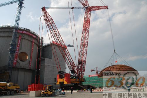 2009年11月27日下午,广东火电力特工程公司,用三一SCC9000型900吨级履带式起重机,成功将福建宁德核电站1#号1000MW核电机组穹顶吊装到位。